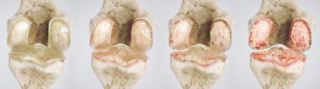 Com o desgaste articular, os sintomas clínicos começam a aparecer, e podem se desenvolver em qualquer articulação